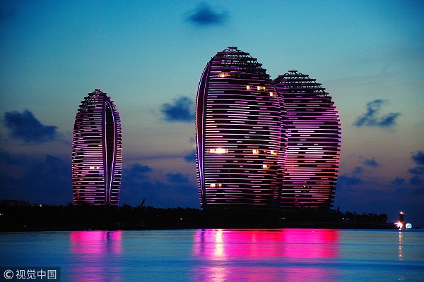 Nightview of Sanya bay in Hainan province. [Photo/VCG]