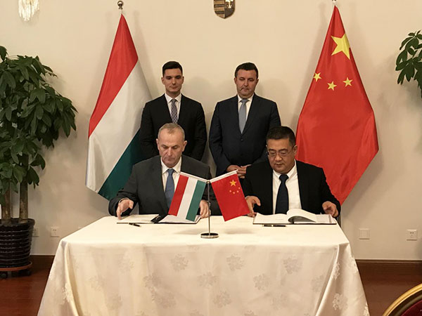 The signing ceremony took place at the Hungarian embassy in Beijing on Nov 12. [Photo by Xian Bihui/Chinadaily.com.cn]