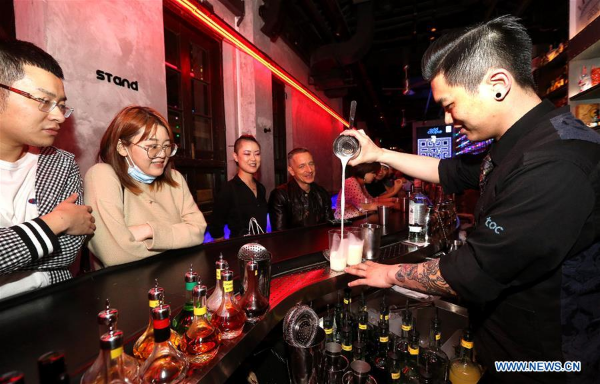 Allen Peng, owner of Adash Bar in downtown Shanghai, says business now is better than last year. He's been a bartender for nearly eight years and believes that the younger people are most interested in exploring the concept of cocktails.