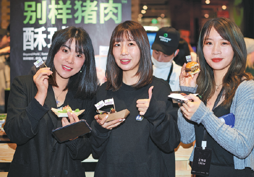 Beyond Meat holds a tasting event in Shanghai last month, at which a variety of foods made from plant-based meat was on offer. CHINA DAILY