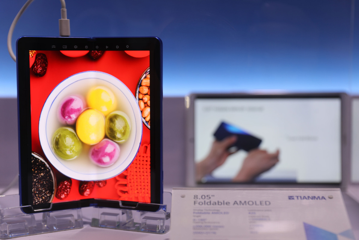 A foldable AMOLED screen is showcased at the 2020 World Conference on Display Industry in Hefei, Anhui province on Nov 20, 2020. [Photo/Xinhua]