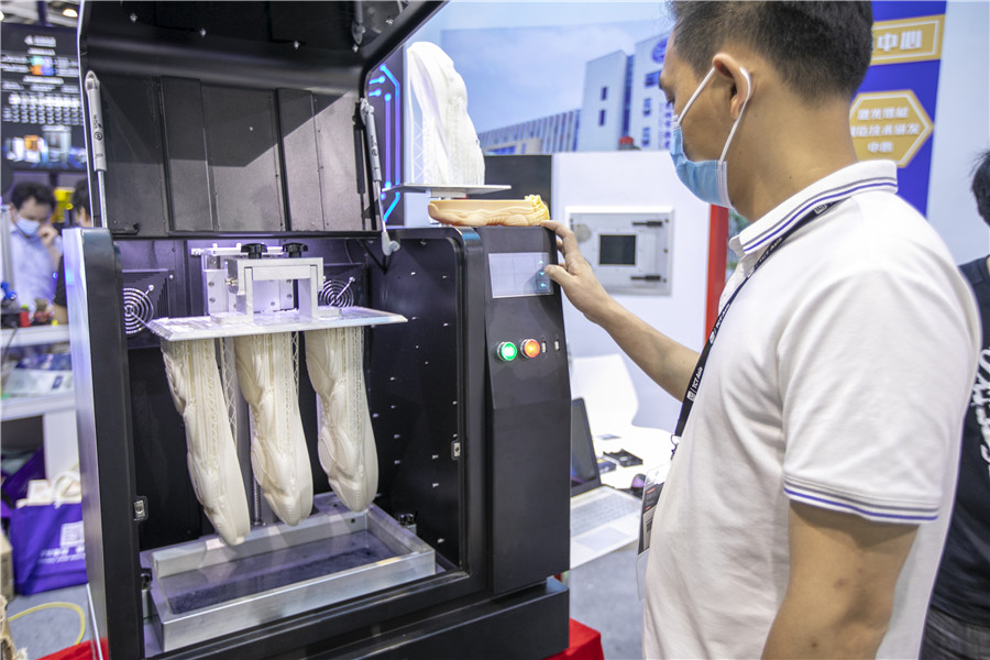3D-printed shoe models at an expo in Shanghai on May 28, 2021. [Photo/IC]
