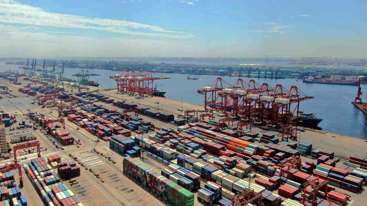 A bird's-eye view of Tianjin Port on Aug 14, 2019. [Photo/Xinhua]