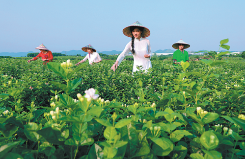 Lu Hongjian, director of the agriculture bureau of Hengxian county, Nanning, Guangxi's capital, said that at least 10 million yuan is directed toward development of the crucial sector every year, with more than 500 million yuan invested in recent years in a jasmine industry park, including a planting demonstration base covering 333 hectares.