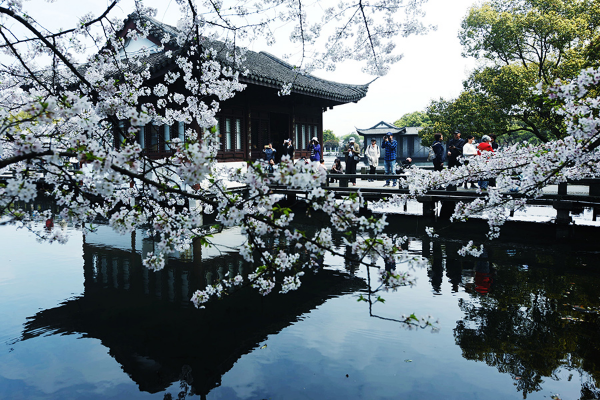 Tourists enjoy viewing cherry blossoms at West Lake in Hangzhou, Zhejiang province on March 25, 2021. [Photo by Long Wei/for China Daily]