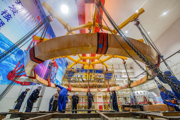 Employees from China National Nuclear Corp's Southwestern Institute of Physics install experimental research equipment at a nuclear facility in Chengdu, Sichuan province on Sept 16, 2019. [Photo/Xinhua]