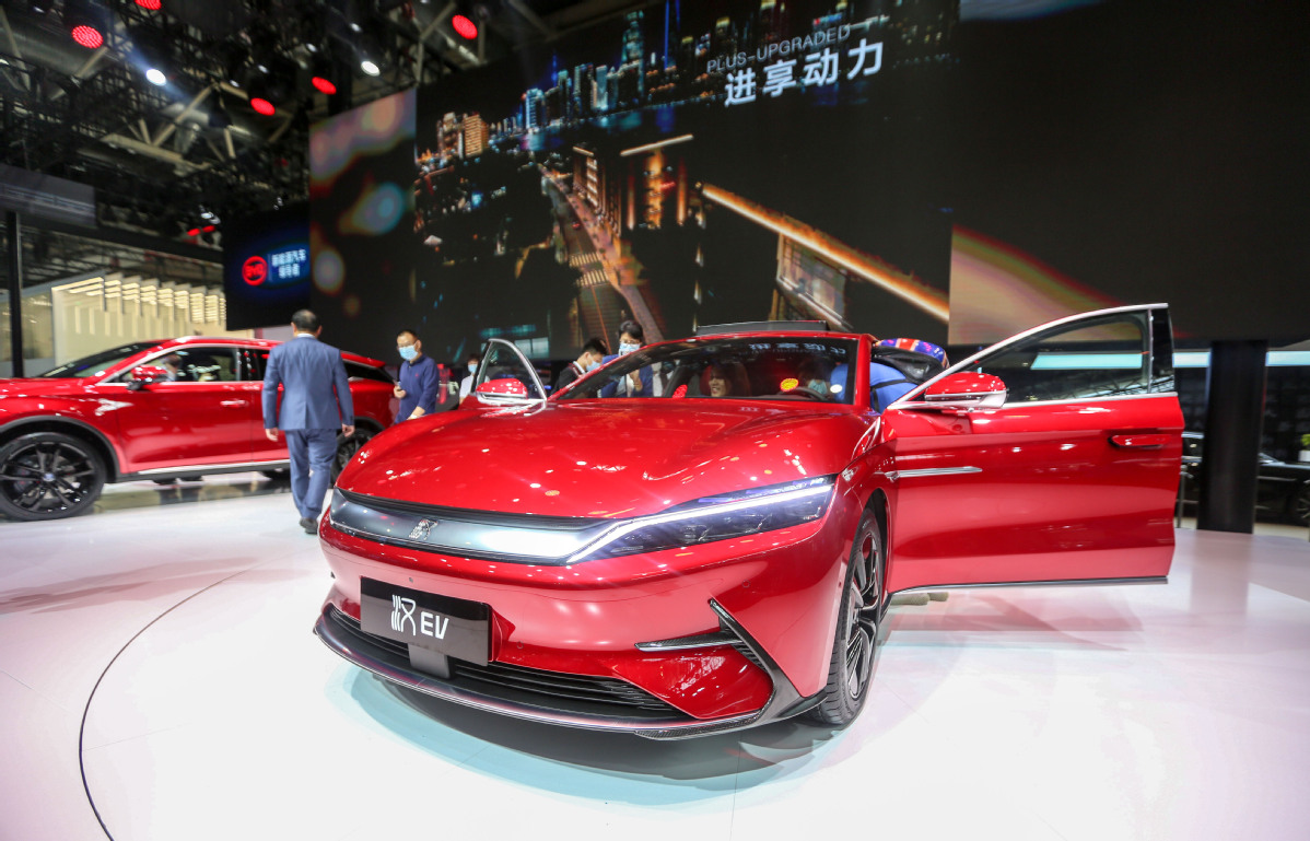 A BYD Han EV is on display at an auto expo in Beijing, on Sept 16, 2020. [Photo/IC]