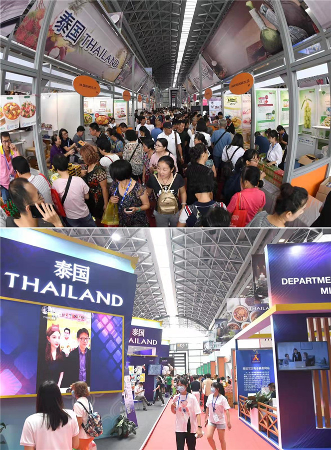 The upper photo shows people visiting stands for Thailand at the 14th China-ASEAN Expo in Nanning, capital of South China's Guangxi Zhuang autonomous region, on Sept 15, 2017. The lower photo shows people visiting the Thailand pavilion at the 18th China-ASEAN Expo in Nanning on Sept 13, 2021. [Photo/Xinhua]