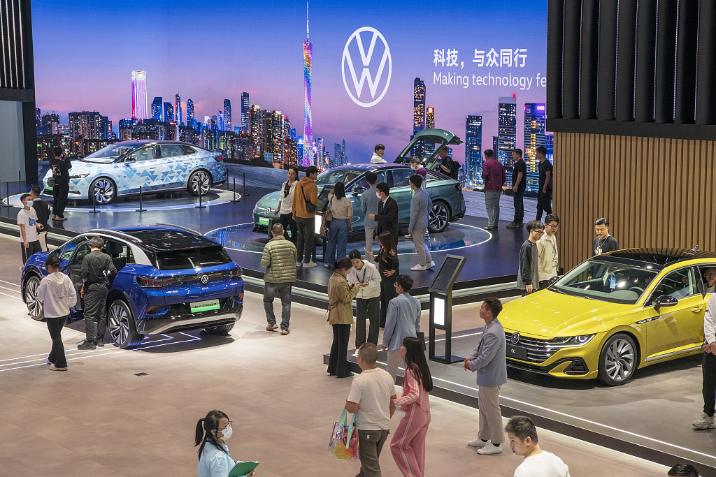 People visit booth of SAIC Volkswagen at an auto show in Guangzhou, Guangdong province, Nov 20, 2023. [Photo/VCG]