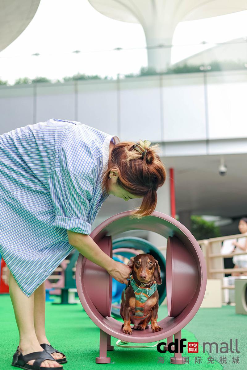 The Haikou International Duty Free Shopping Complex welcomes pets this summer, offering dedicated play zones and dining areas for shoppers with furry companions. [Photo provided to chinadaily.com.cn]